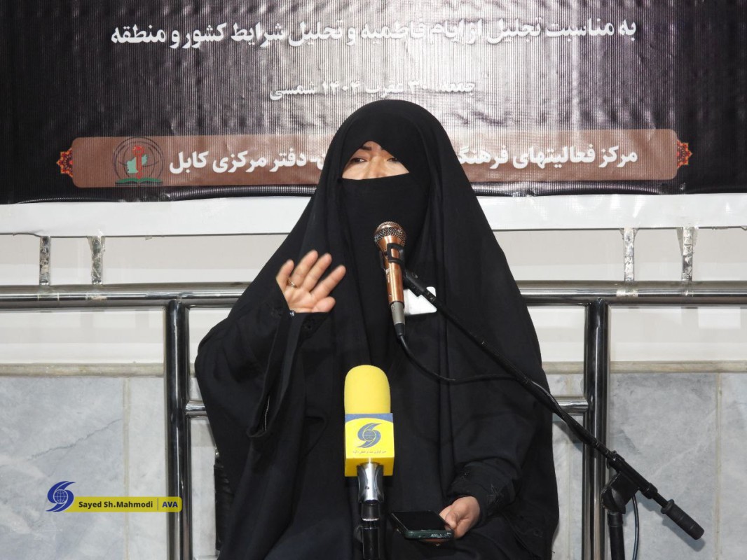 خبرگزاری صدای افغان(آوا) – کابل: این همایش با مجریگری بانو ثریا سادات علوی و قرائت چند آیه از کلام الله مجید توسط قاری سید ضامن علی چاوشی، آغاز شد و با سخنرانی بانو ثریا سادات کاظمی، معاون بخش بانوان مرکز تبیان و مقالهخوانی بانو نیلوفر سادات ادامه یافت.