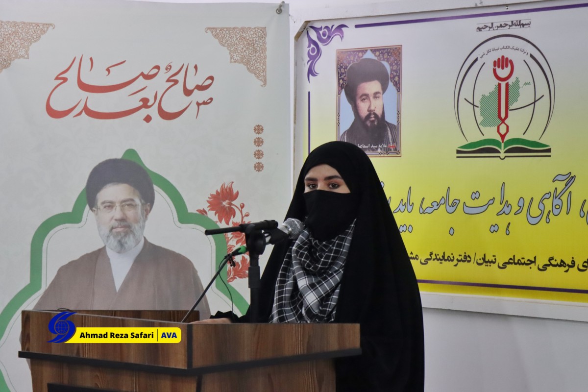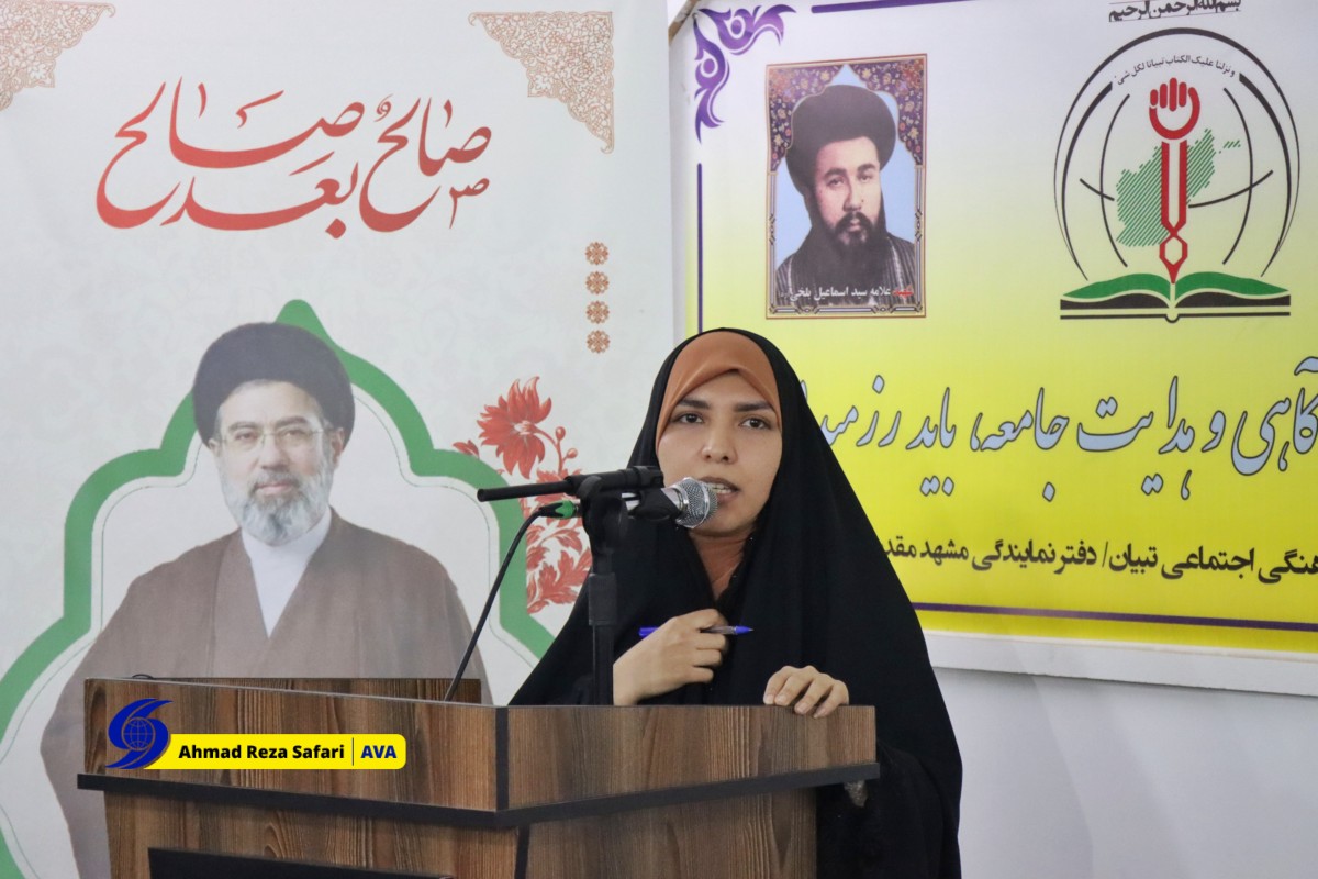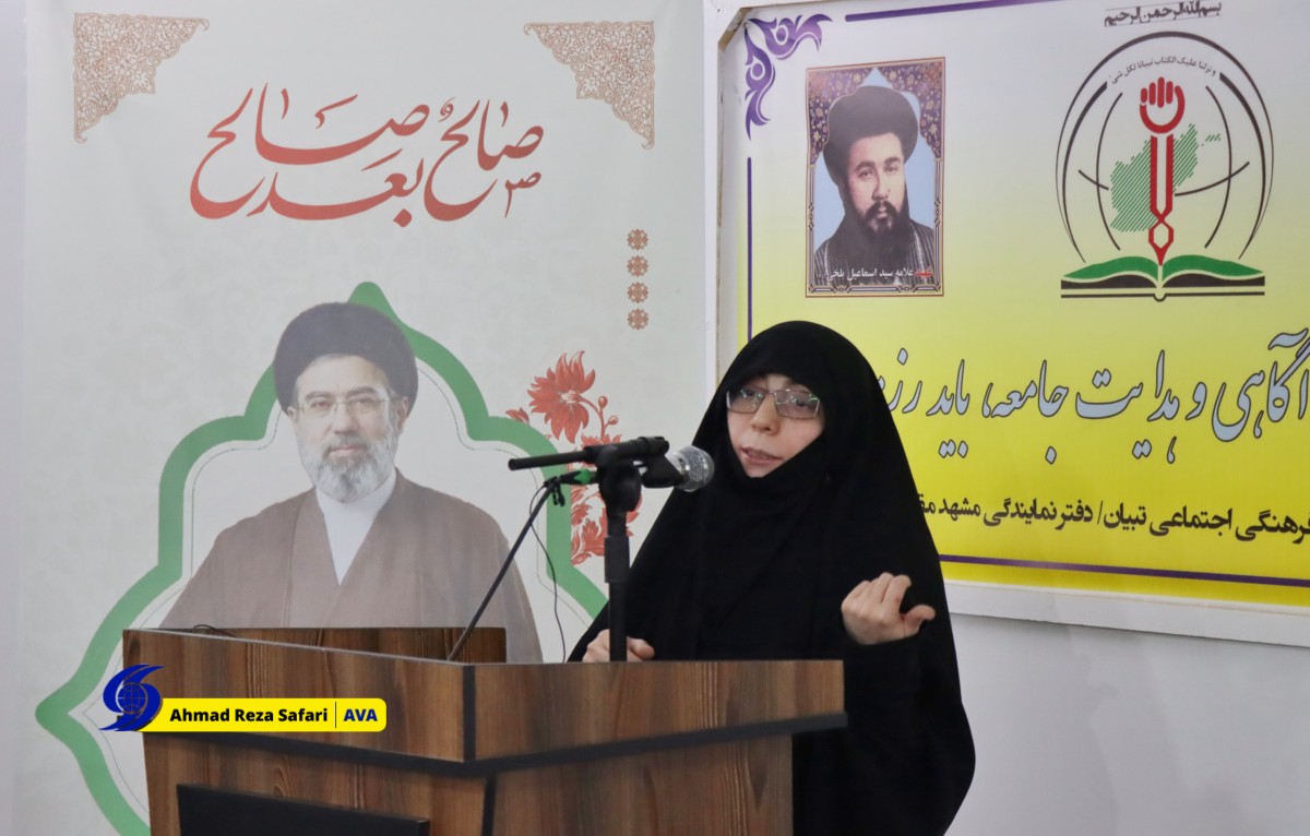 خبرگزاری صدای افغان(آوا)_مشهد مقدس: در این مراسم، حجتالاسلام و المسلمین سید محمد هاشمی راستی، مسئول دفتر مرکز تبیان افغانستان در مشهد مقدس، خانمها فرزانه نبیزاده، مسئول بخش بانوان مرکز تبیان در مشهد مقدس، شهلا سادات فعال فرهنگی، زهرا رضازاده استاد حوزه علمیه، سکینه حیدری مدرس دروس تحصیلی، یاسمین حسنات مدیر حوزه علمیه در مشهد و کبری احسانی مدیر حوزه امالائمه در مشهد پیرامون محورهای این همایش به ایراد سخن پرداختند.